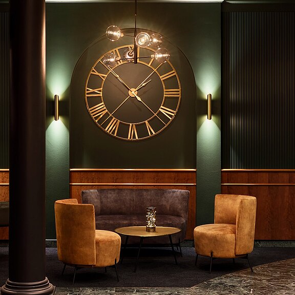 Hochwertige Hotel-Lobby mit zeitloser Eleganz und meisterhafter Ausführung