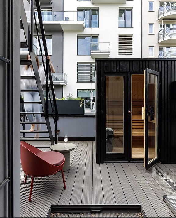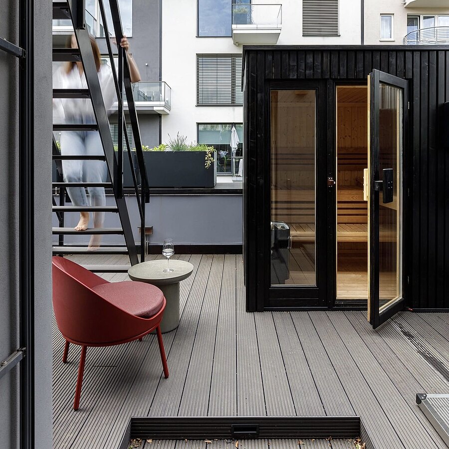Prenzlauer Berg, BerlinDiese exklusive Sauna auf der Dachterrasse ist mehr als ein Ort der Ruhe. Sie steht für Qualität, Handwerkskunst und durchdachtes Design.