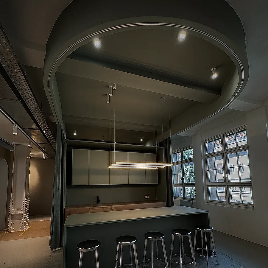 Jeder Bereich wurde mit Sorgfalt und gestalterischer Klarheit realisiert – von der Küche in tiefmattem Olivgrün über die offene Meeting-Lounge mit LED-Wandleuchten bis zur Reset-Area mit edlen Fliesen aus der italienischen Adriaregion.