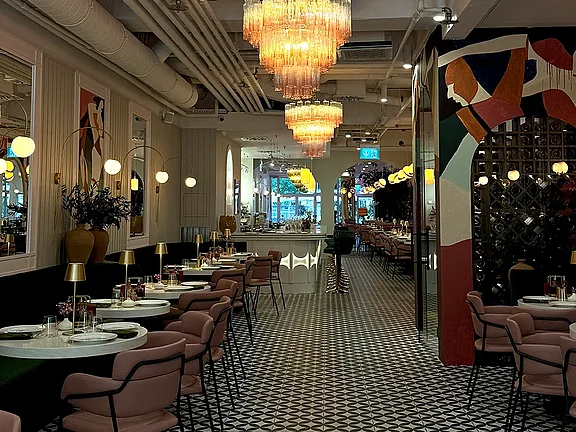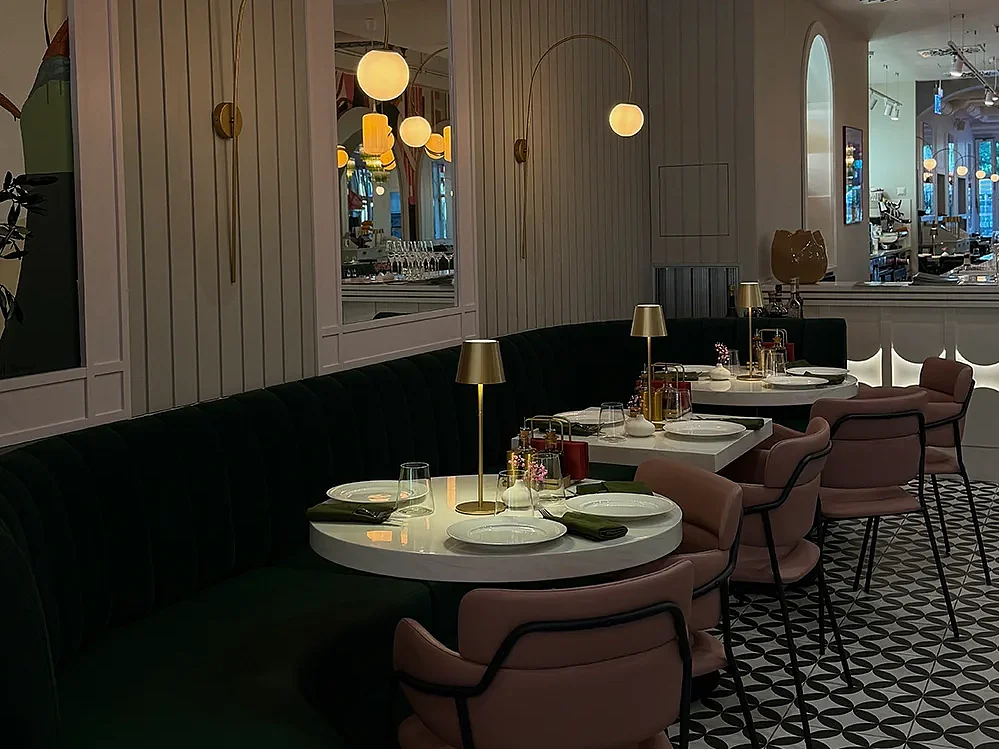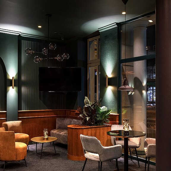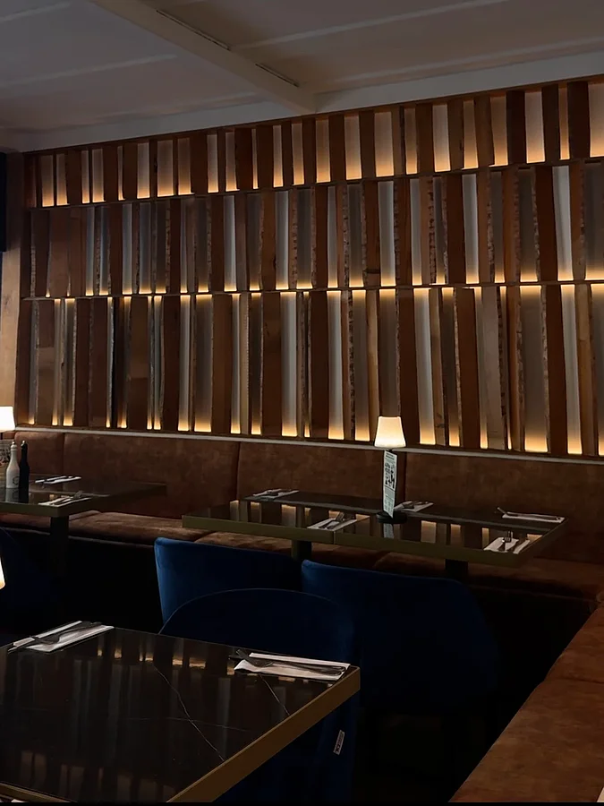 Ein eleganter, moderner Gastronomiebereich mit individueller Atmosphäre und hochwertigen Oberflächen.
