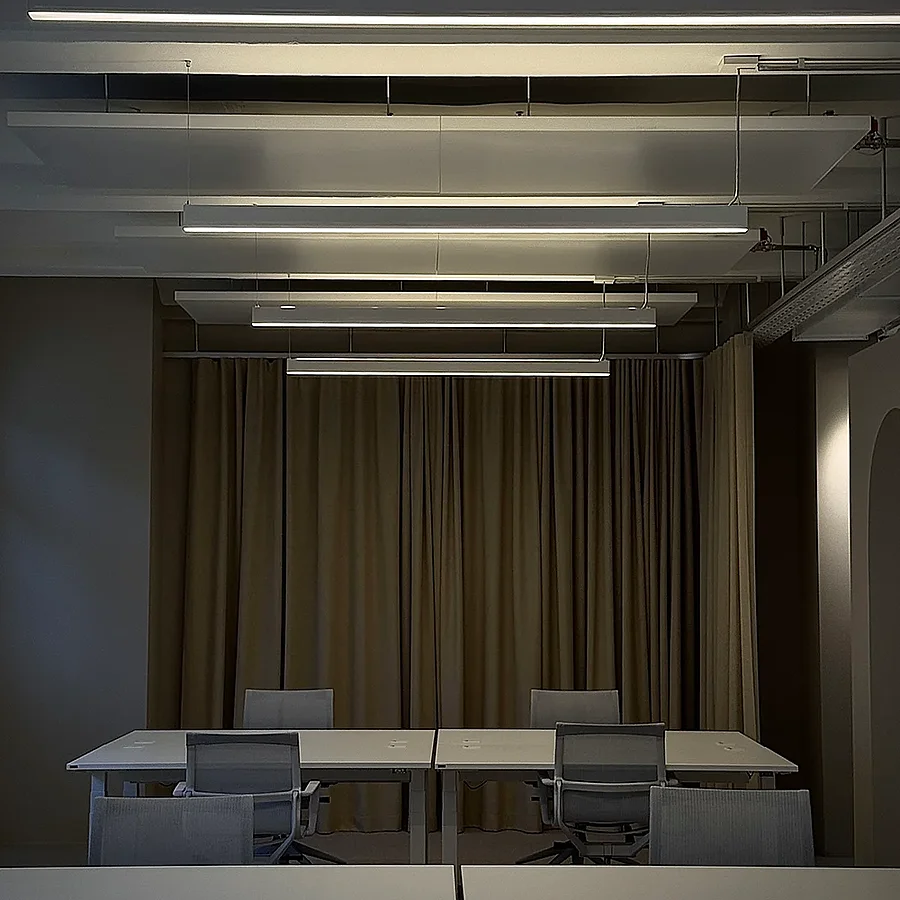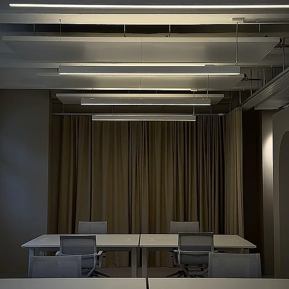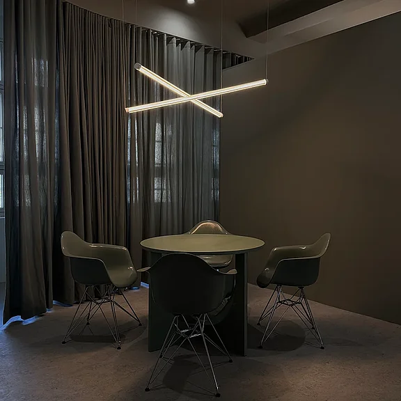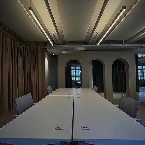 Ein modernes, harmonisches Arbeitsumfeld mit klarer Formensprache und hochwertigen Materialien.