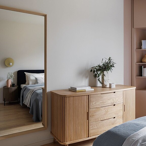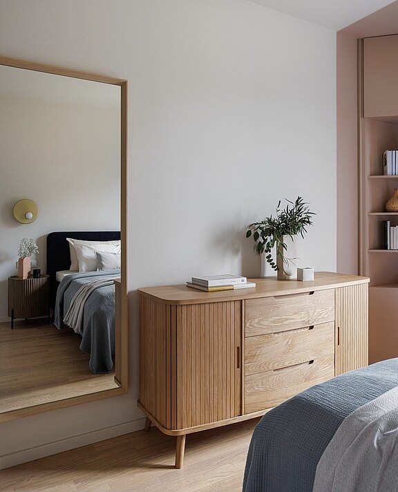 Prenzlauer Berg, BerlinIn Prenzlauer Berg entstand ein stilvolles Schlafzimmer, das Wärme, Design und Handwerkskunst in perfekter Harmonie vereint. Gemeinsam mit Architekten und unserem Team aus erfahrenen Handwerkern wurde ein Rückzugsort geschaffen, der durch hochwertige Wandpaneele und ein fein abgestimmtes Farbkonzept aus Beige- und Rosétönen ein Gefühl von Ruhe und Geborgenheit vermittelt.