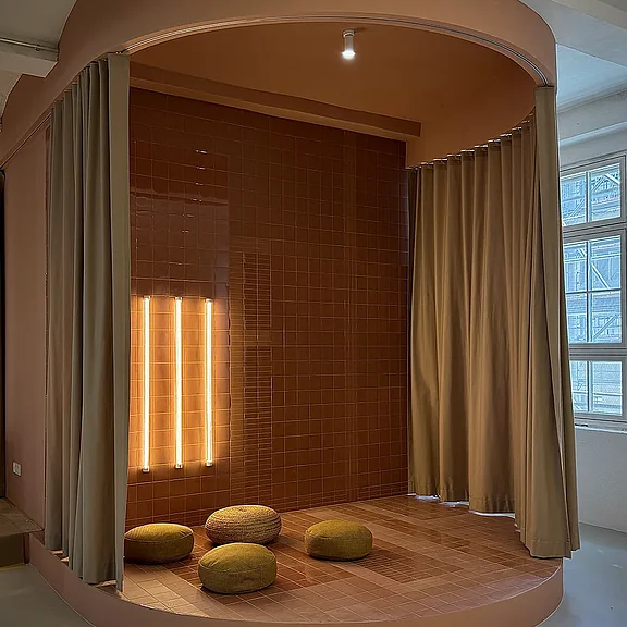 Ein individuell konzipierter Office-Space mit maßgefertigten Elementen und edlen Oberflächen aus Südeuropa. Vom grifflosen Küchenmodul in tiefmattem Olivgrün über die Lounge mit integrierter Beleuchtung bis zur Reset-Area mit glänzend veredelten Fliesen wurde jedes Detail sorgfältig geplant und umgesetzt. So entstand ein Raum, der Funktionalität, Ästhetik und Charakter vereint.