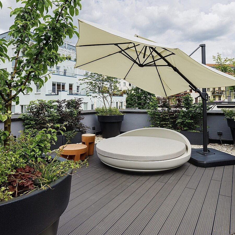 Jedes Element – von der Unterkonstruktion bis zur letzten Holzleiste – wurde sorgfältig gefertigt und montiert. So entstand eine maßgefertigte Wohlfühloase im Freien, die Design, Komfort und Handwerksqualität auf höchstem Niveau vereint.
