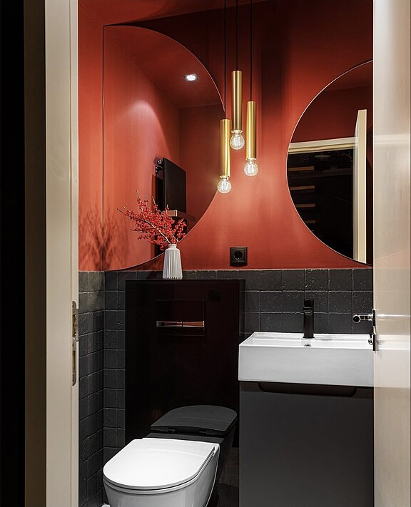 Prenzlauer Berg, BerlinIm urbanen Herzen von Prenzlauer Berg entstand ein exklusiver Gäste-WC- und Waschbereich, der Luxus in seiner puristischsten Form verkörpert.