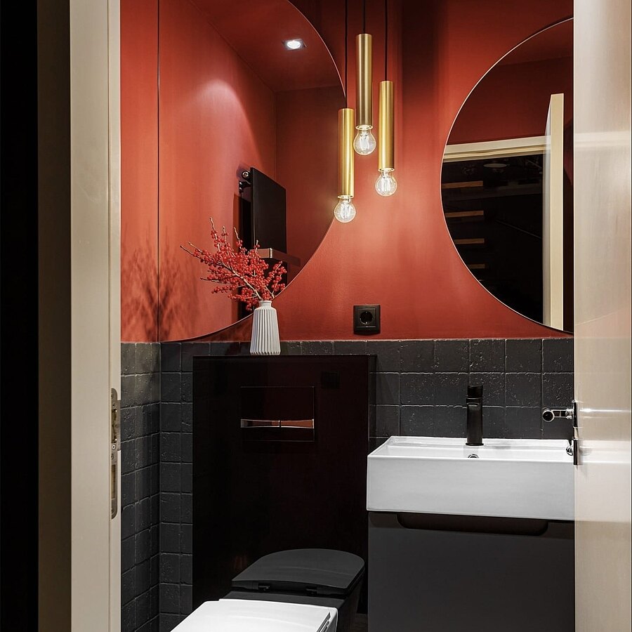 Ein maßgefertigter Waschtischbereich, eingebettet in eine klar strukturierte Wandgestaltung, schafft ein harmonisches Gleichgewicht zwischen Funktionalität und Ästhetik. Jedes Detail, von der Armatur bis zur Beleuchtung, wurde mit höchster Sorgfalt geplant und umgesetzt.
